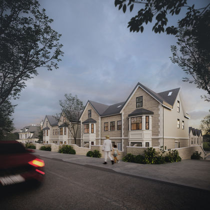 The lower part of the site accommodates a terrace of four two-bedroom homes, our contemporary interpretation of the townhouse typology. These smaller dwellings were designed with young families in mind, offering spacious living areas, well-connected gardens, and the kind of functionality that supports ease and comfort in daily life.